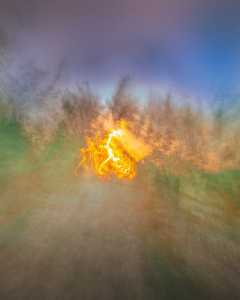 They are less powerful than the previous ones, and that’s why they come in a vertical format, like the following ones.These are the suns of transformation. Their mission is to break inertia and initiate new processes; they act like energetic scalpels that cut, ignite, or rewrite reality. Formally, they are characterized by long, highly directional strokes, vertical or diagonal, that generate a clear sensation of a blow, discharge, or taut wire. The core may exist, but the linear gesture and the direction of the light are what dominate the image. Chromatically, they usually present strong contrasts between burned areas and dense blacks, with palettes associated with fire, lava, and lightning: burnt yellows, oranges, reds, deep violets, often against very dark skies or backgrounds. In the human system, they correspond to wars, crises, social eruptions, radical personal changes, and extreme physical phenomena such as storms, volcanoes, blackouts, or fires.